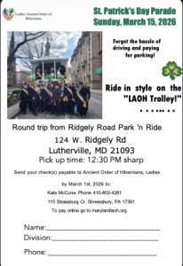 Send your check(s) payable to: Ancient Order of Hibernians, Ladies by March 1st to: